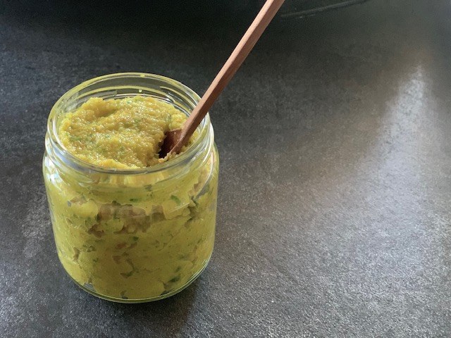 BLOG 2025.12.09 柚子胡椒 事務所の裏にたわわに実る柚子柚子ジャムはよく作りますが今年は柚子胡椒も作ってみました^^本当は9月~10月頃の青い柚子が良いのかもしれませんが今が旬の黄柚子でも十分柚子胡椒作れます。黄柚子の皮を剥き、青唐辛子、お塩を足してフードプロセッサーで攪拌しました。柚子の香りが部屋中に広がり、なんとも幸福感。柚子8個使って1瓶♩これから3か月おでんや煮物、お魚料理に使うのが楽しみです。